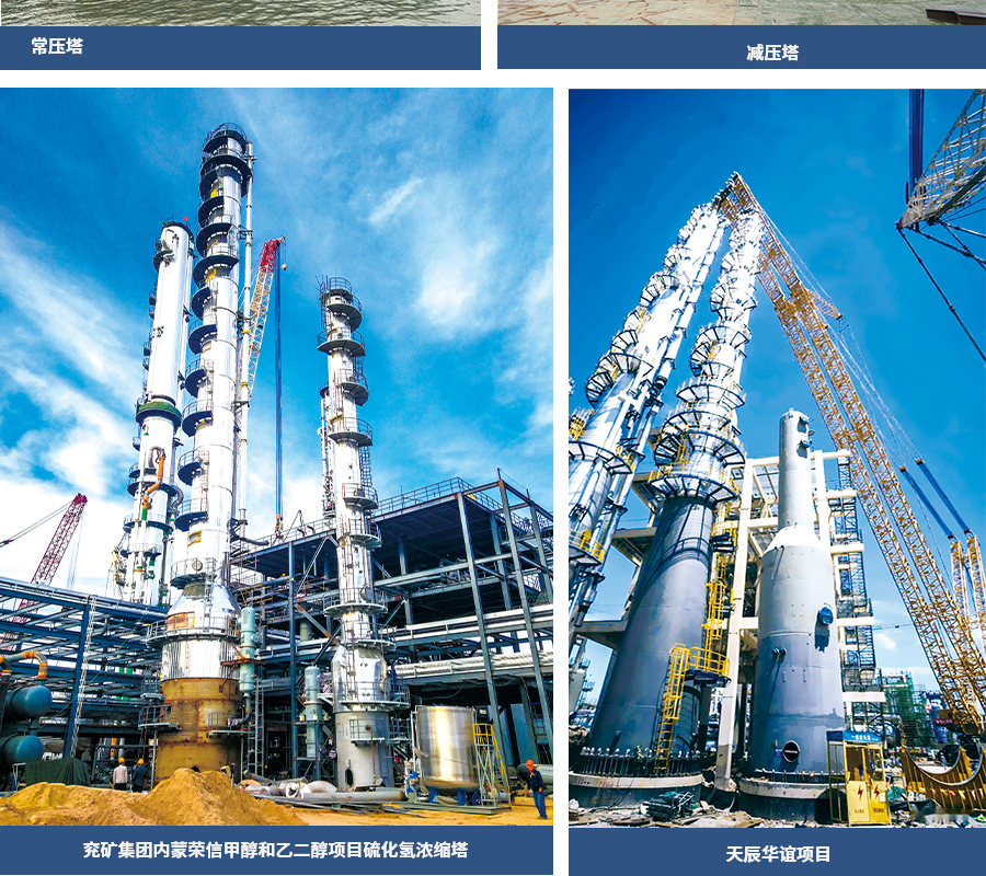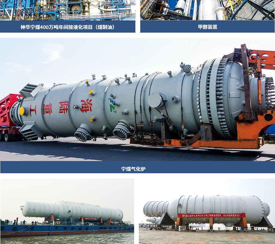 神華寧煤400萬噸/年間接液化項目(煤制油) 公司參與設計制造的核心關鍵設:干煤粉加壓氣化爐、低溫甲醇洗裝置中的4臺解吸塔和4臺閃蒸塔,油品加工裝置中的8臺渣蠟減壓罐和8臺渣蠟儲存罐等這些大型超限設備的首次國產(chǎn)化制造任務、替代進口,填補國內空白;突破一系列大型超限壓力容器核心關鍵工藝技術。 項目實景