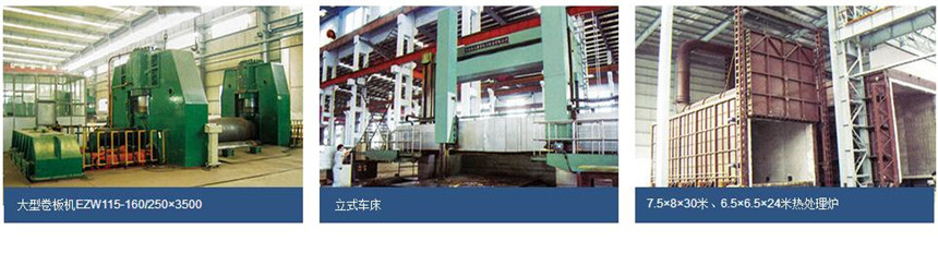車(chē)間擁有生產(chǎn)設(shè)備1100臺(tái)套,擁有∮32-∮76蛇形管生產(chǎn)流水線和膜式壁拼排焊接機(jī),行車(chē)最大起吊能力達(dá)700噸。冷卷180mm/熱卷250mm板厚的重型卷板機(jī),(8m×8m×30m,800℃)整體熱處理爐;建有大型探傷室,配備1000℃的高溫電子試驗(yàn)機(jī),6MeV電子直線加速器,穿透能力達(dá)250mmy射線;擁有林肯帶極堆焊機(jī)、深孔對(duì)接焊管板自動(dòng)焊機(jī)、小管內(nèi)孔堆焊機(jī);金工車(chē)間配有CKX511000型立車(chē)、數(shù)控立車(chē)加工最大尺寸達(dá)φ6.3m*4m,4m龍門(mén)數(shù)控多頭深孔鉆床和行程12m鏜軸φ200mm的TJK6P20A數(shù)控落地鏜銑床等先進(jìn)的重型加工設(shè)備。