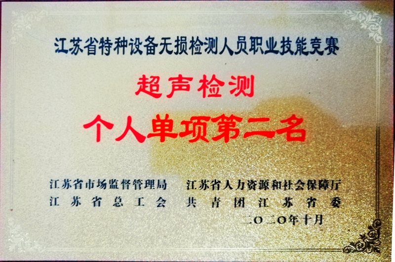 熱烈祝賀!我司在江蘇省首屆特種設備無損檢測人員職業技能競賽中奪得優異成績!